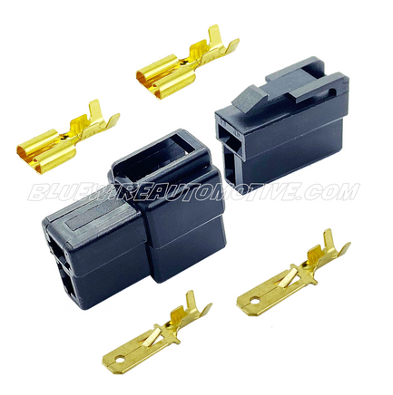 The housings interlock & come in 1pin, 2pin, 3pin, 4pin, 6pin & 8pin sets. Each comes with plug, socket, and male and female locking spade lugs.