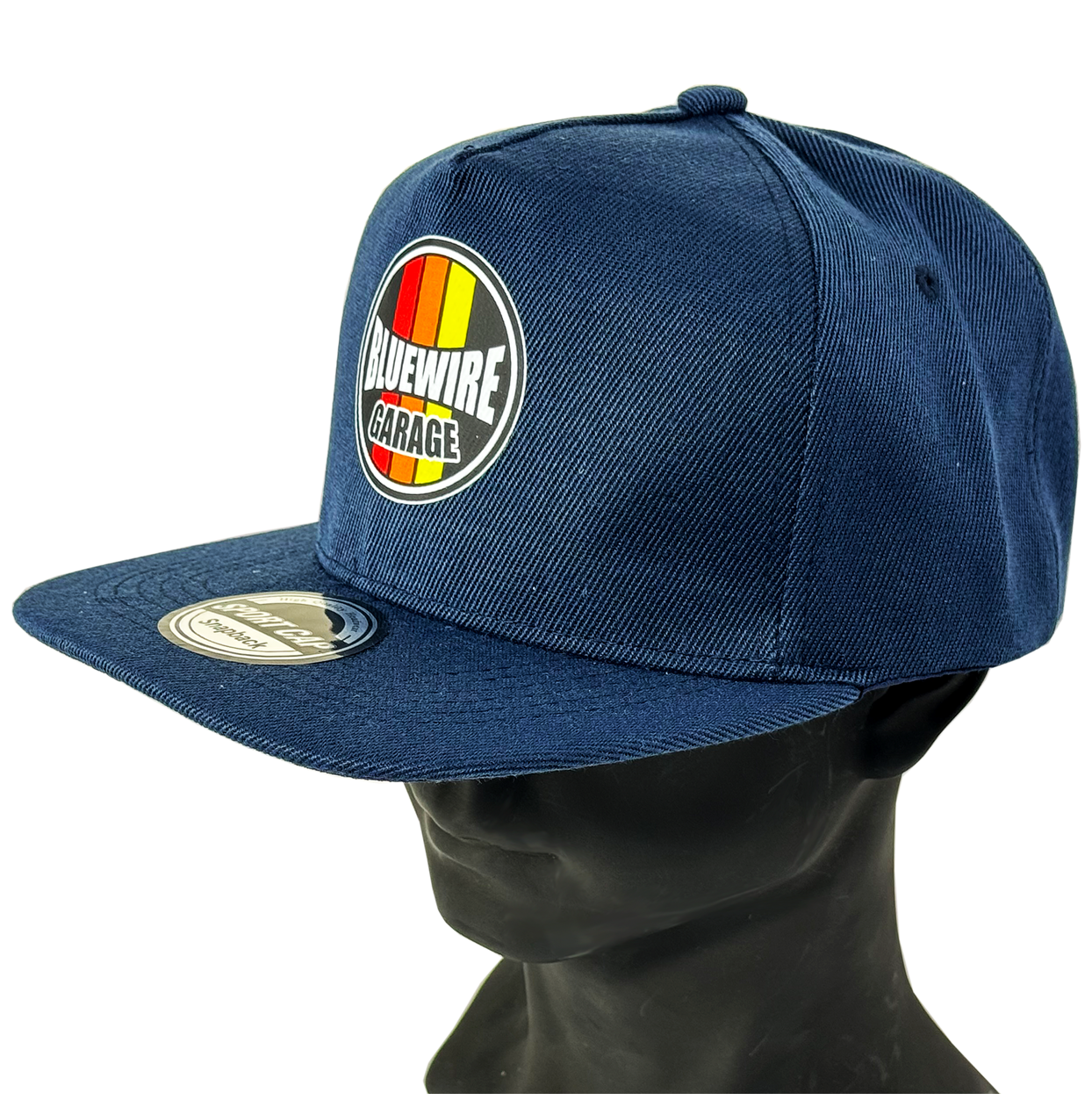Pre-flat peak with Bluewire Garage logo printed on the front.